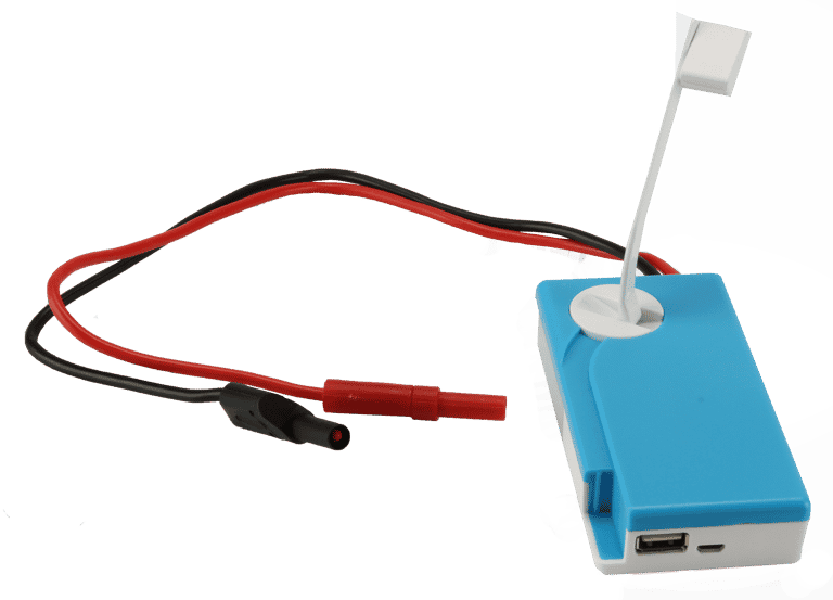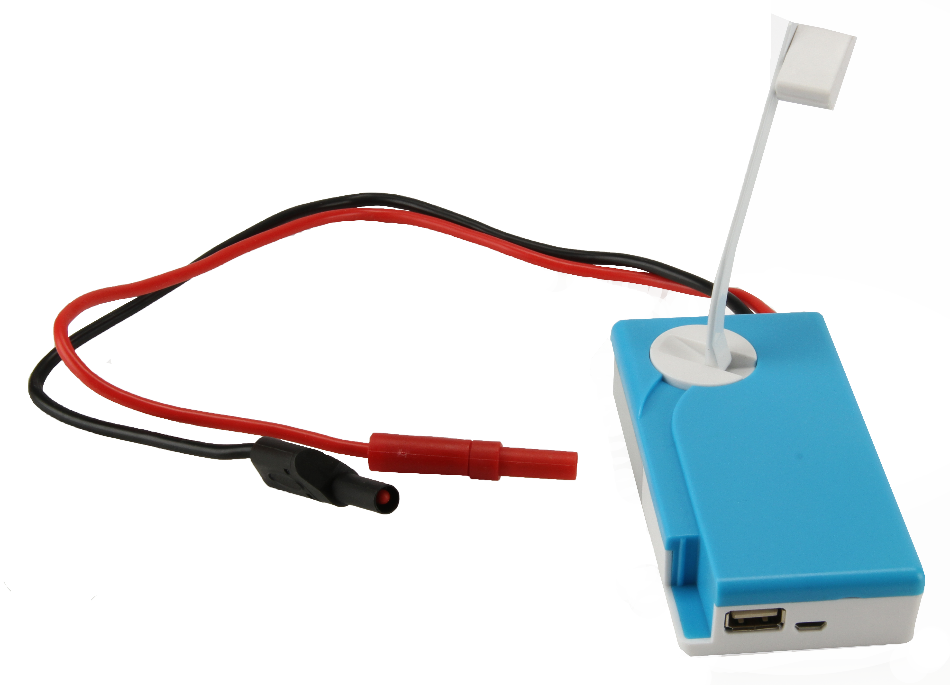 At strømkildens spænding ikke må være højere end 2 V, og strømstyrken ikke må være højere end 500 mA (0,5 A).