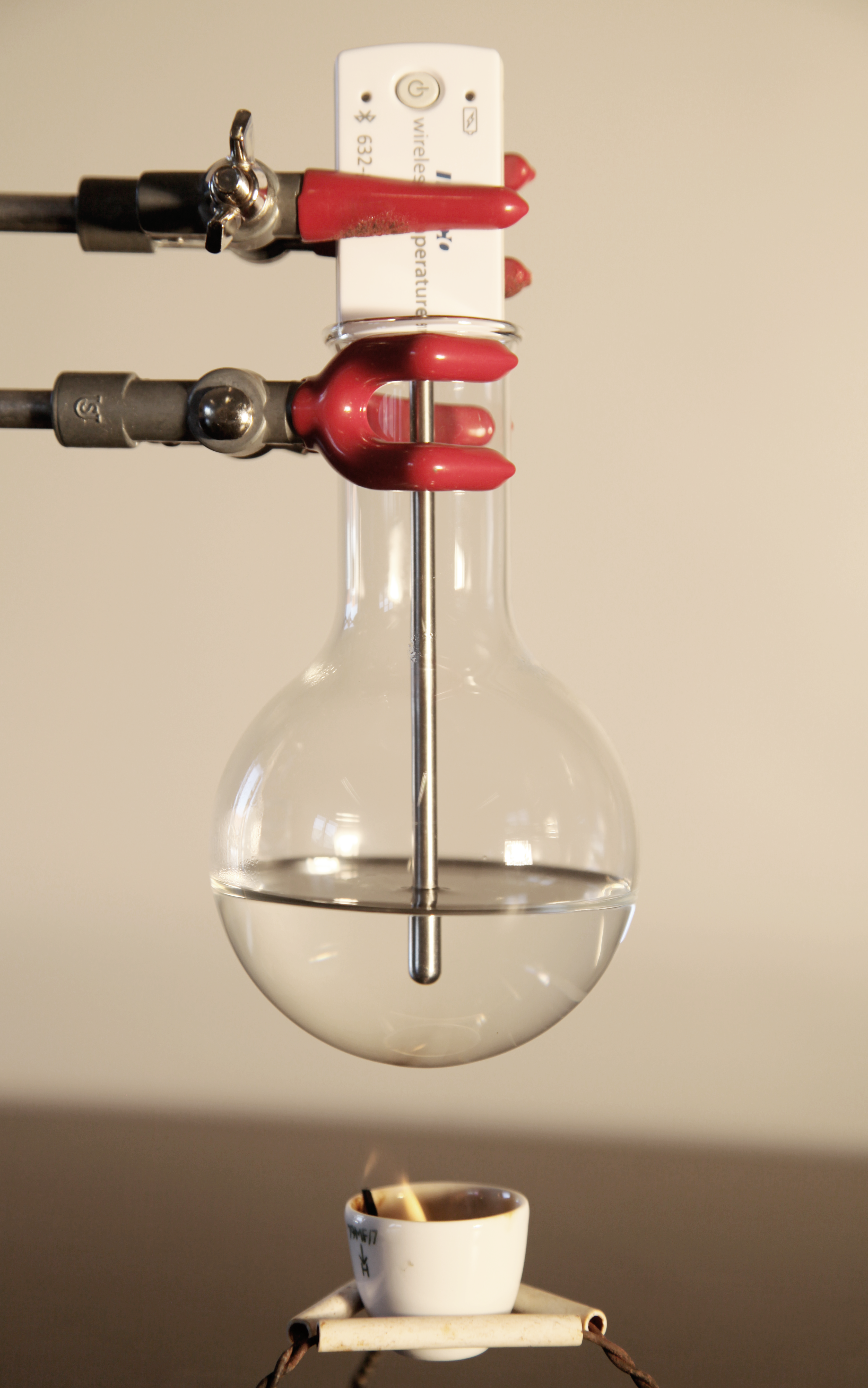 Spænd rundkolben fast i stativet.