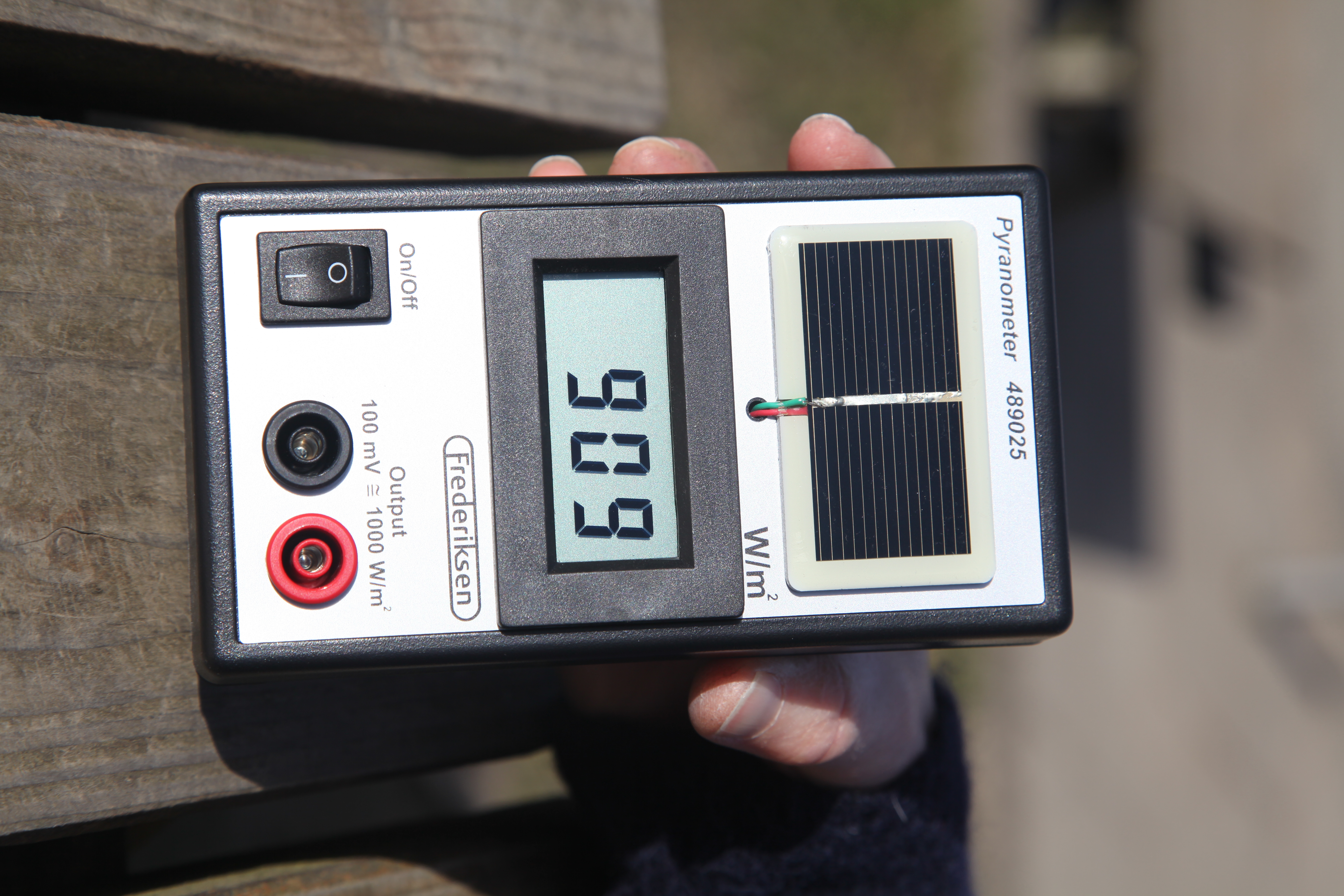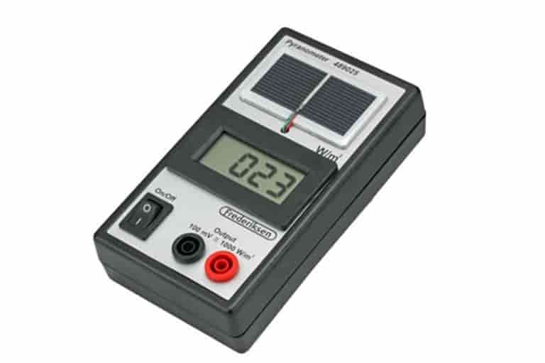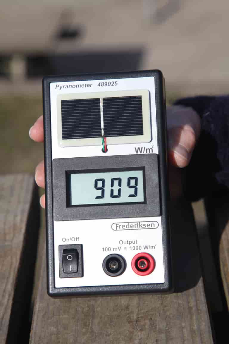 Sæt pyranometerets vinkel med vandret til 0 °og aflæs solens indstrålingseffekt.