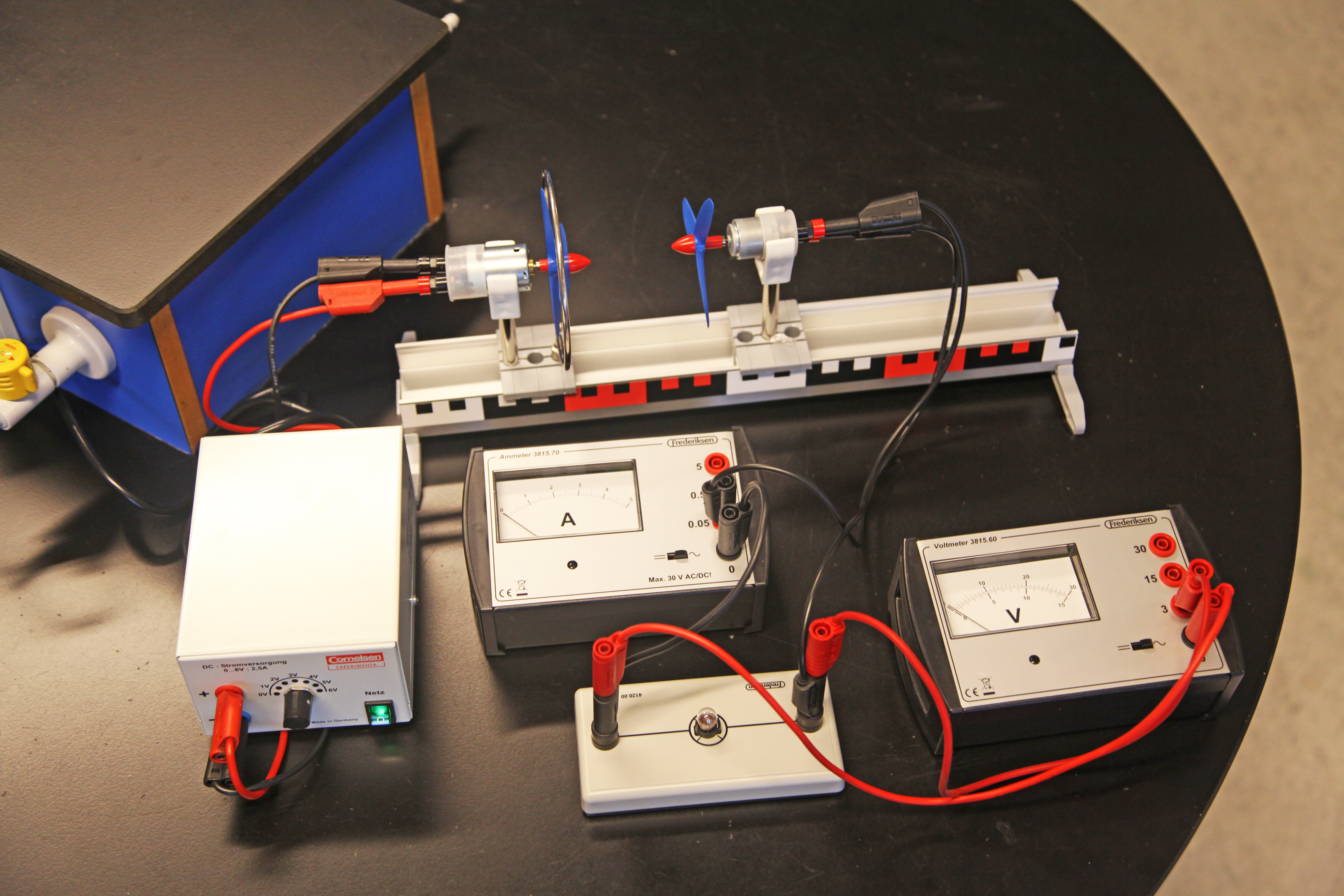 Byg opstillingen, som er vist på fotoet. Sørg for, at afstanden mellem ventilatoren og møllen er konstant gennem hele undersøgelsen.