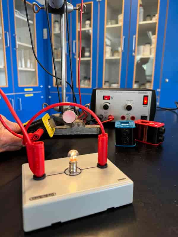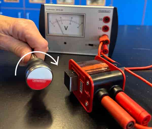 Skab elektrisk strøm i en spole ud fra et magnetfelt. Galvanometer bruges til at måle strømstyrken.