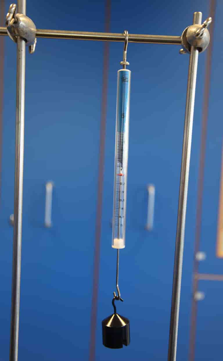 Hæng et lod op i kraftmåleren.