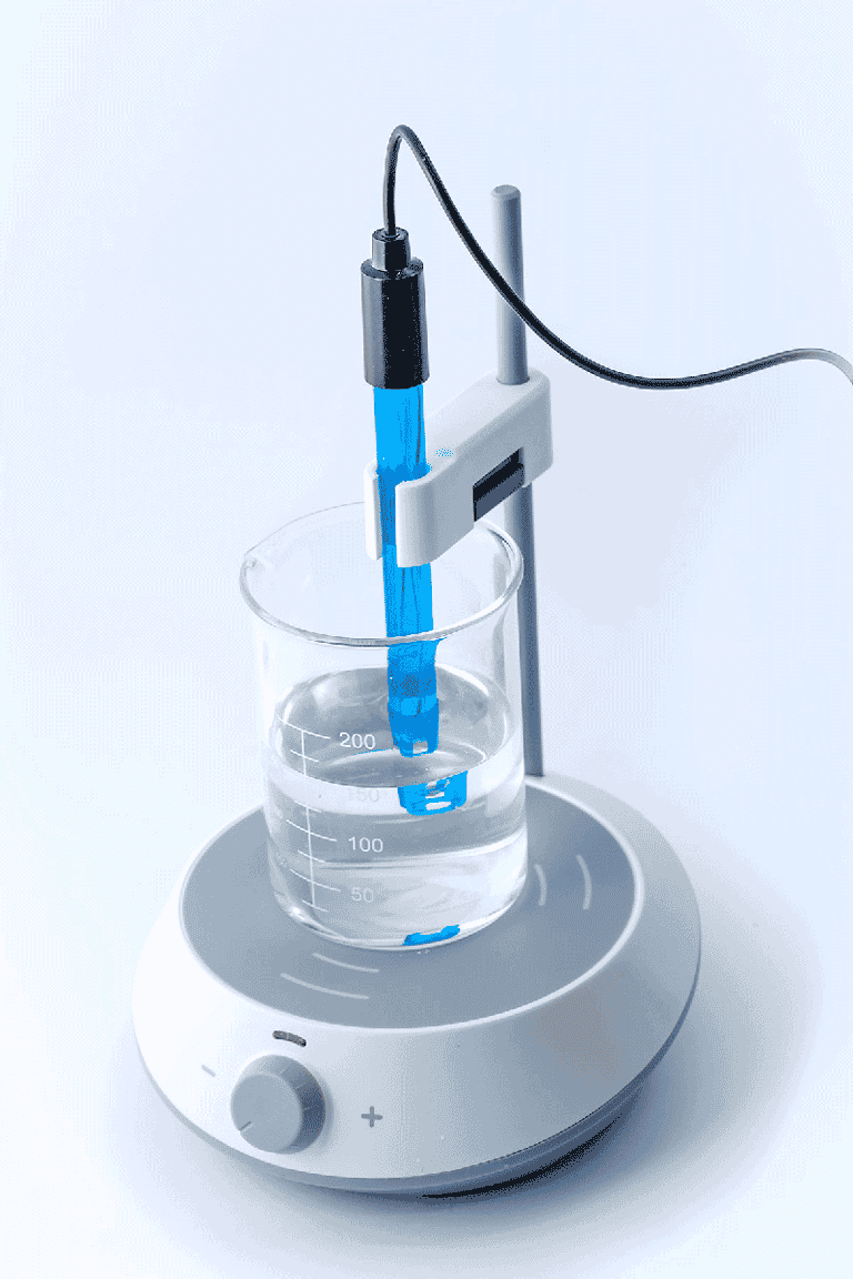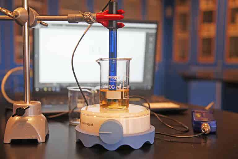 Anbring pH-sensoren i et stativ, så de nederste 2 cm af pH-elektroden er nede i eddiken.